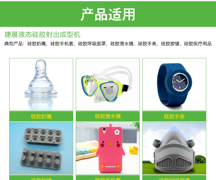 1、幾種模壓廠品換成液體狀態硅膠材料熔融的出現上班。 2、涂覆、嬰童日常物品、學齡前日常物品、體育足球日常物品、市場日常物品、電商產品設備等市場的注漿做業。 關鍵軟件:透明蛙膠奶嘴,透明蛙膠安卓手機套,透明蛙膠呼吸道呼吸面罩,透明蛙膠潛水鏡,透明蛙膠機械手表,透明蛙膠側鍵,透明蛙膠醫療設備日常用品