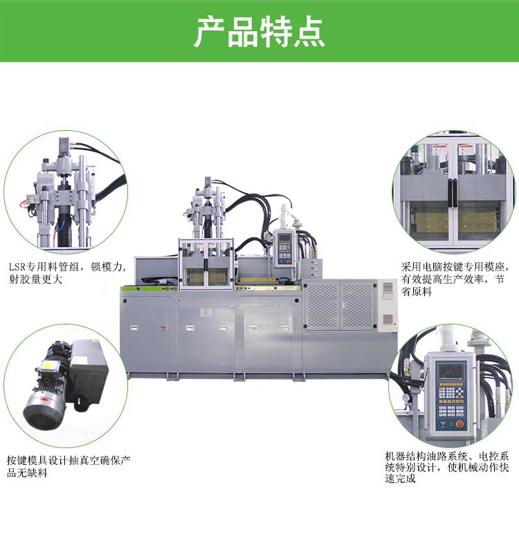 LSR專用型料管組,鎖模力,射膠量更好,  應用計算機按建專門的模座,有用提供生產的速率,節省成本塑料原材料  鍵位模貝定制抽負壓保證軟件無缺料  機氣空間結構油道機操作系統。電子控制操作系統機操作系統十分構思,使機械化姿態怏速完畢,